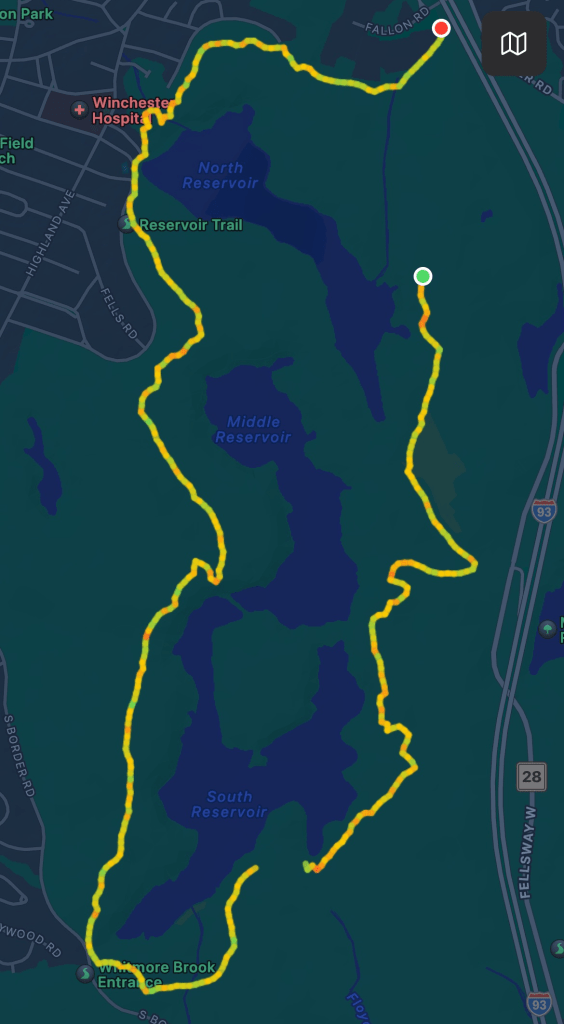 We hiked 6.25 miles at the Middlesex Fells Reservation with nearly 10 pounds on our backs and poles in our hands for the first time. To say we were “woefully unprepared” would be an overstatement, but we were not really ready and made some mildly painful mistakes. I mean, it’s been really hot out, and by the time we stepped foot on the trailhead it was 11:15am. We got up late, got out of the house late, bought lunch at Whole Foods late… we forgot to apply bug spray despite the fact that it was in the trunk of my car, Chris forgot a hat, I had no idea where I was driving to… BUT we did find the place and we did hike the Reservoir Trail and it was really nice. Cool in the woods, and only buggy when we reached a low elevation. We shared the trail with lots of hikers and bikers, which made me feel more certain that we would not run into a bear or a mountain lion. We saw no snakes. We did see 57 chipmunks, 34 squirrels, and 2 beautiful Woody woodpeckers. If I was bitten by a tick, I have yet to discover it.